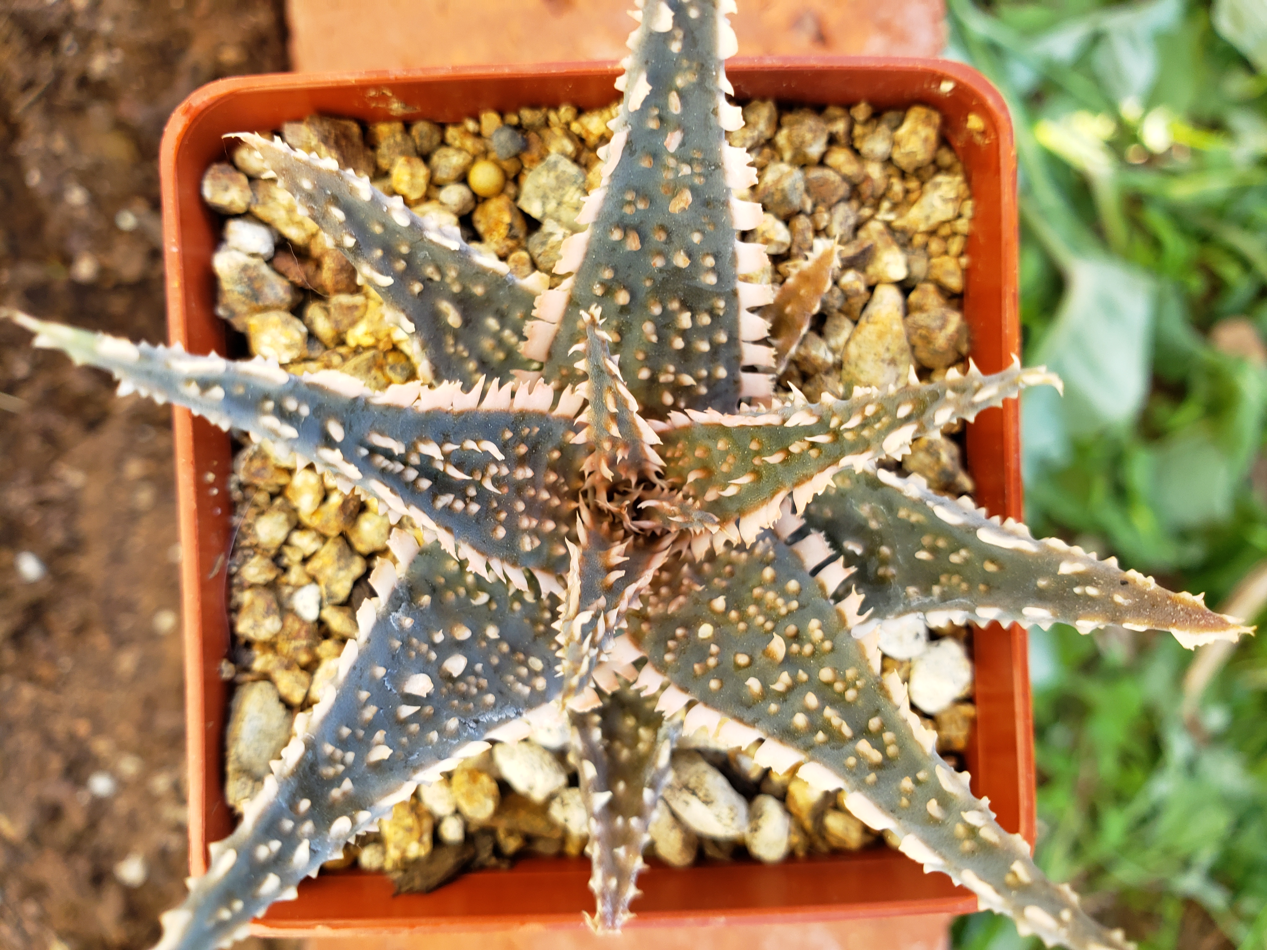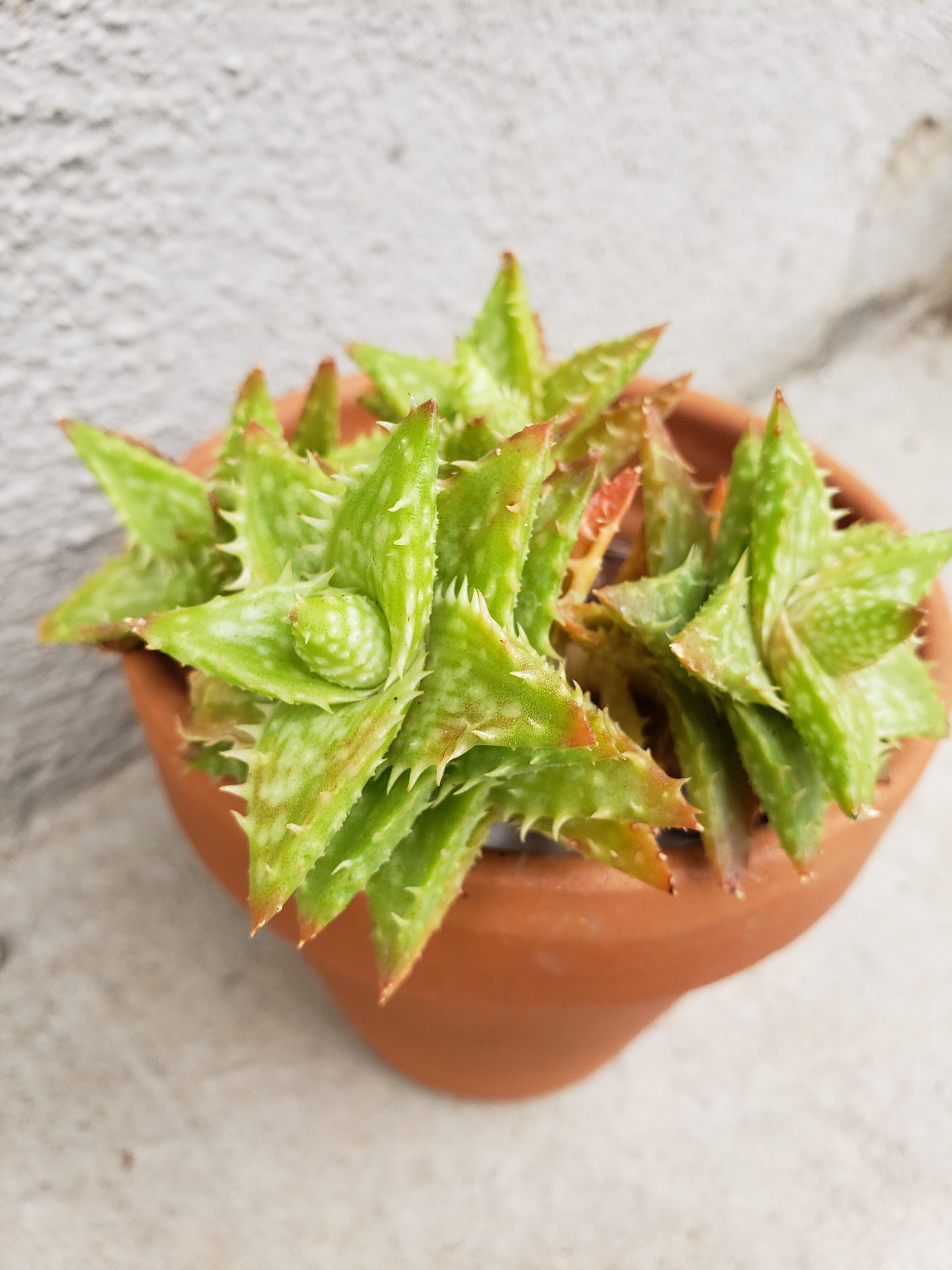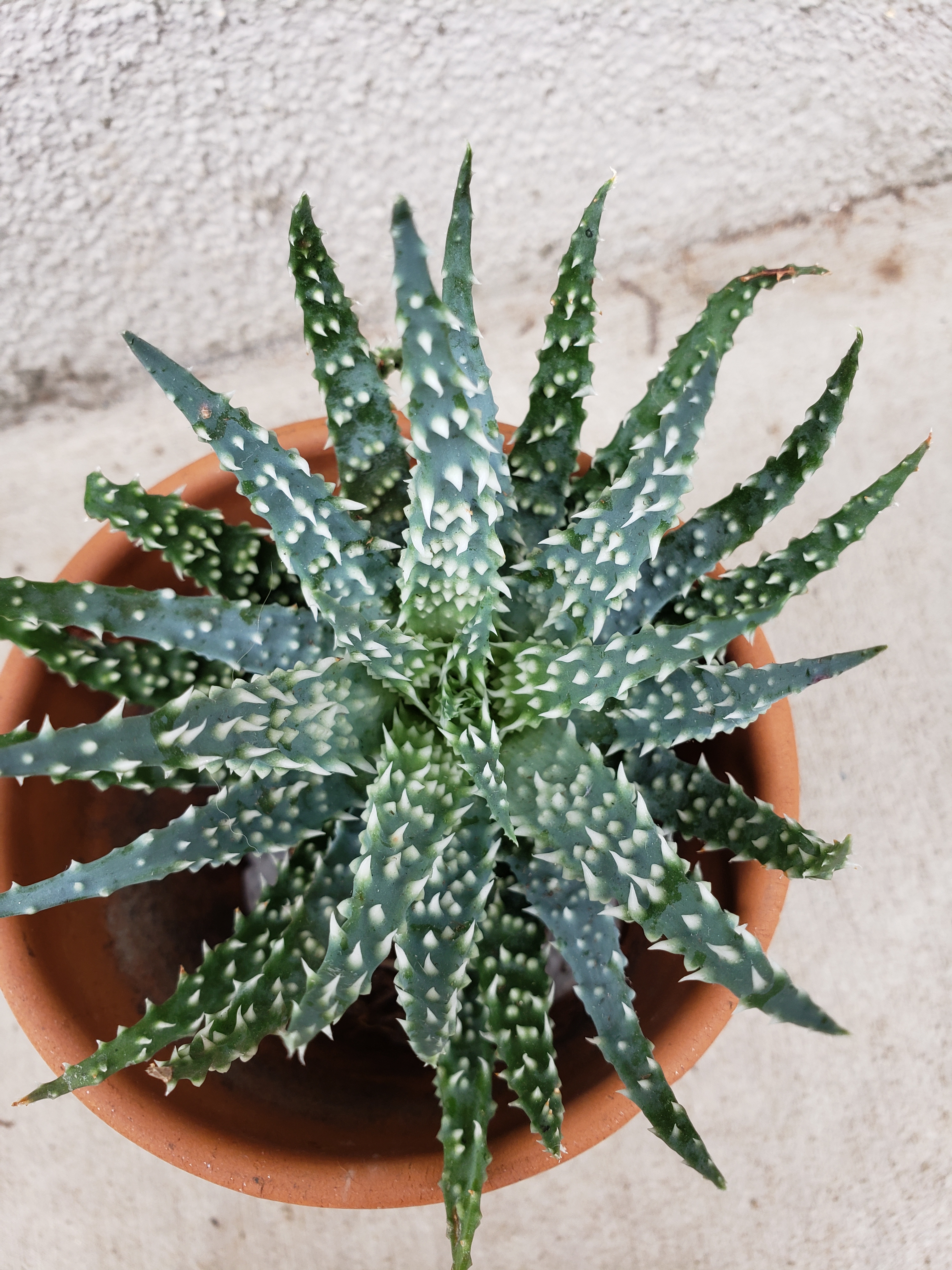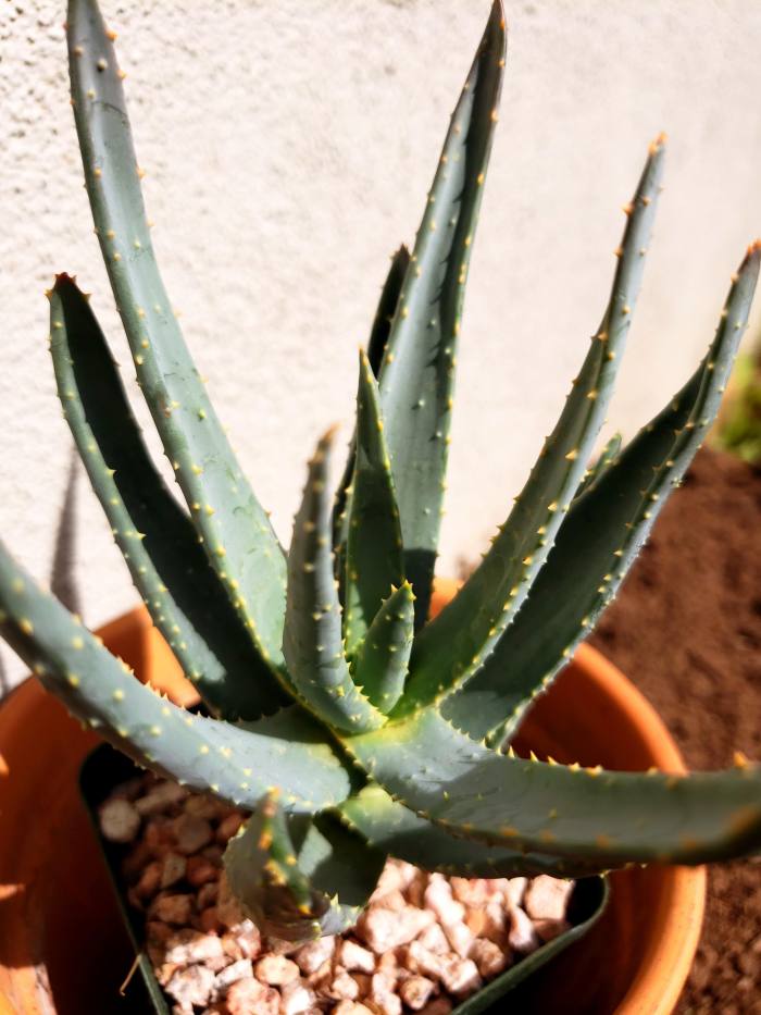 Small blue green aloe with soft white spikes
